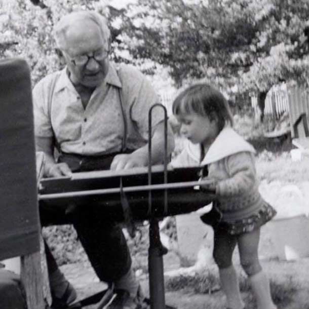 Als kleines Mädchen verbrachte ich viel Zeit bei meinen Großeltern. Sie gingen verschiedenen Tätigkeiten nach, unter anderem waren sie auch Imker. Die Bienen waren auf hölzerne Bienenhäuser und Wagen, aufgestellt in abgelegenen Gärten, verteilt. Nach dem Frühstück verabschiedete sich mein Opa und ging los, um nach seinen Bienen zu schauen. Gegen Mittag kam er zurück und ging am Nachmittag wieder los. Wenn er mich mitnahm, wurde ich oft in respektvoller Entfernung auf eine Schaukel gesetzt und er verschwand im Bienenhaus. Zum Spielen eigneten sich diese Tiere nicht. Gelegentlich bekam ich auch einen Stich, also blieb ich in sicherer Entfernung. Dauerte die Arbeit länger, wurde ich in der Dämmerung ins Bienenhaus geholt. Dort war es warm und es roch immer gemütlich nach Honig und Wachs und nach dem Tabak der Räucherpfeife. Bienen gab es im Bienenhaus nicht, aber man hörte ihr Brummen. Manchmal öffnete mein Opa von hinten die Beuten, dann kam eine Glasscheibe zum Vorschein und dahinter konnte ich die Bienen beobachten. Natürlich wollte ich immer die Königin, von der ich wußte, dass es nur eine in jedem Stock gibt, sehen. Die dicken Drohnen konnte ich schon gut unterscheiden.